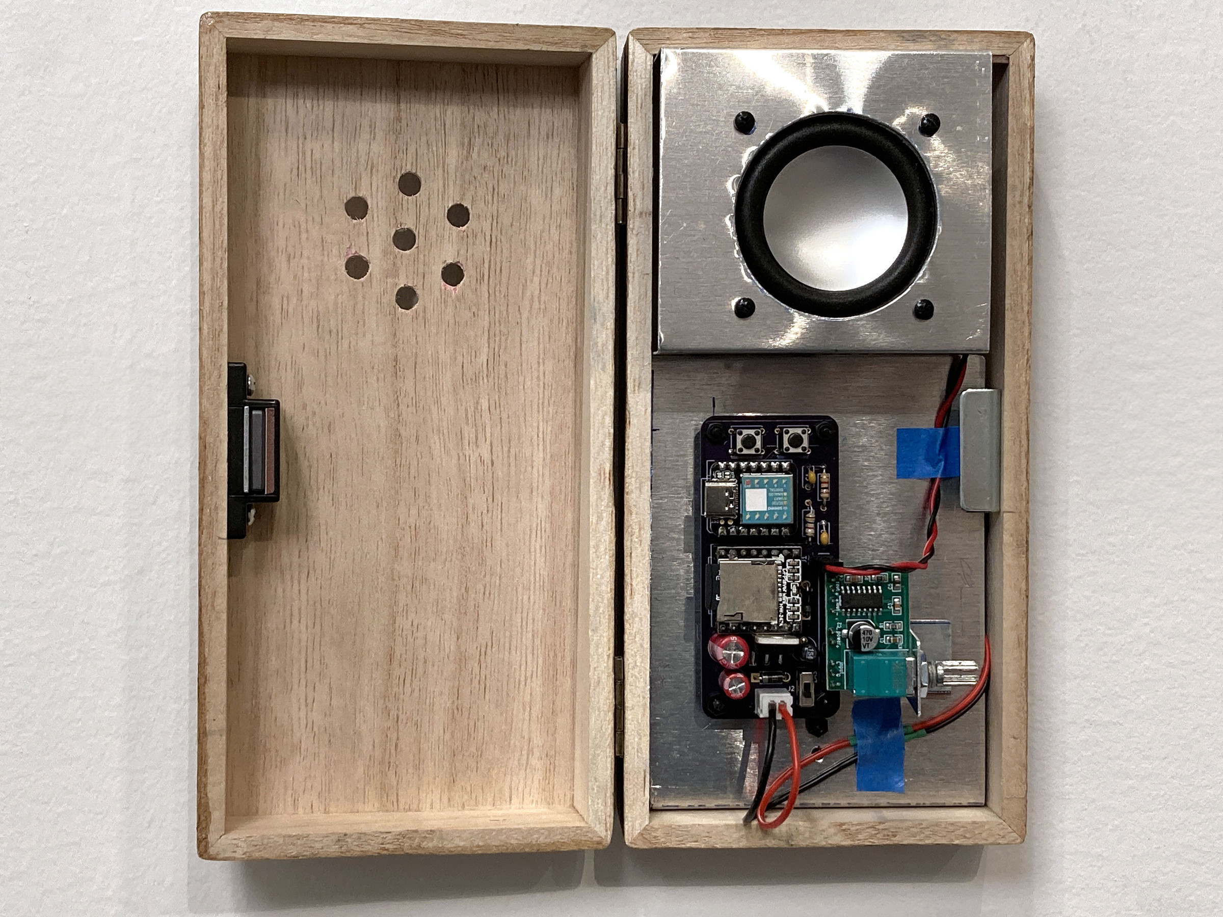 View of inside of a Noise Box with aluminum chassis and embedded electronics